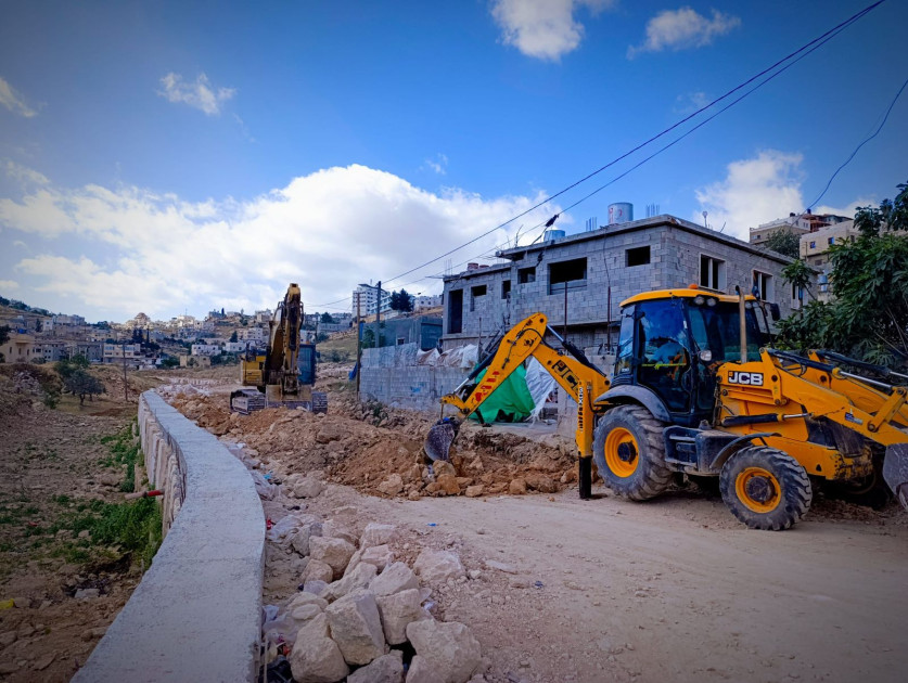 استمرار العمل في مشروع شق وتأهيل رابط أبو هوى المدارس